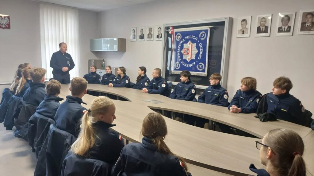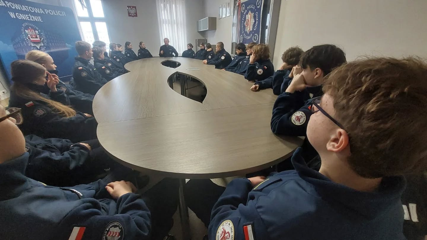 Uczniowie z klasy 1c – mundurowej, w ramach realizacji programu edukacji mundurowej, zostali zaproszeni do Komendy Powiatowej Policji w Gnieźnie. Po powitaniu przez funkcjonariuszy i pracowników cywilnych, spotkali się z komendantem KPP, mł.insp.Maciejem Purolem, oraz Jego zastępcą, mł.insp. Robertem Reckim. Kadeci zwiedzali budynek, strzelnicę, izbę zatrzymań, mieli również okazję do rozmów z policjantami, z różnych wydziałów. Dziękujemy za zaproszenie.